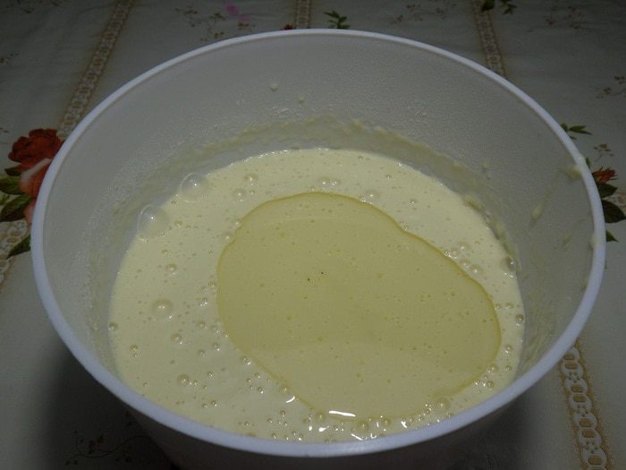 Добавляем растительное масло. Хорошо перемешиваем. Тесто для блинов готово.