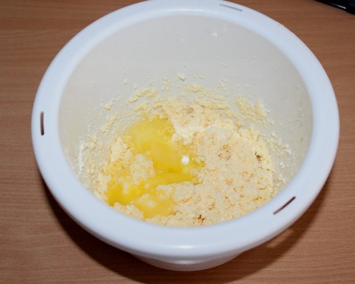 Муку просеять, смешать с содой, разрыхлителем, солью. Соединить сыпучую смесь с масляной, быстро перемешать.