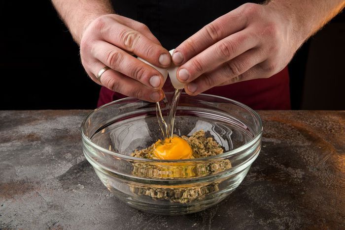 Гречку с грибами и петрушку измельчить в блендере, затем ввести яйцо и еще немного взбить.