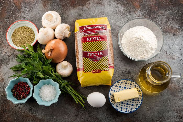 Гречу ТМ «Националь» отварить согласно инструкции на упаковке. Лук почистить и порубить. Грибы нарезать.