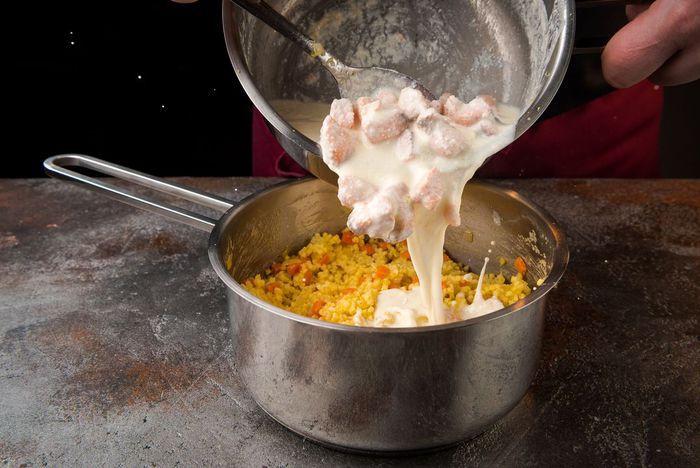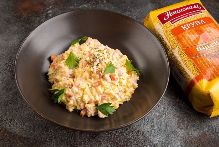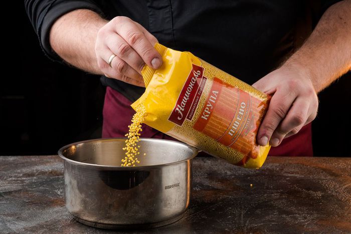 Пшено ТМ «Националь» залить 600 мл кипятка и варить на медленном огне 15 минут до готовности.