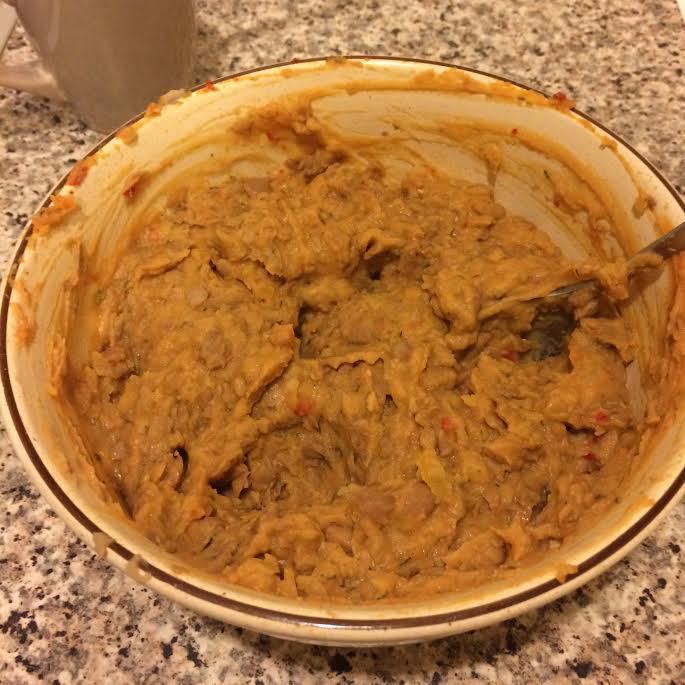 Фасоль отварить до готовности, размять. Лук мелко порезать, потушить, добавить томатную пасту, аджику и перемешать. Лук с томатом добавить к фасоли перемешать. Затем добавить специи, бульон в котором варилось лобио и еще раз хорошо перемешать.