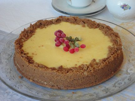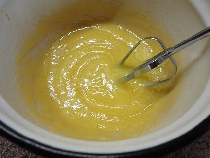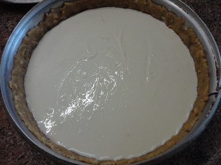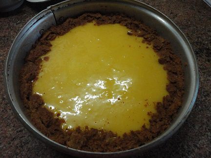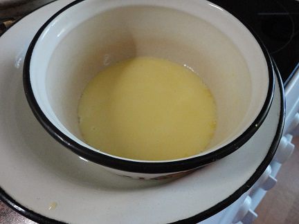 Крем готовить, помешивая, на водяной бане 25 — 30 минут до загустения. Снять с огня, накрыть пленкой и оставить остывать, либо, не переставать помешивать по полного остывания. Получился такой красивый лимонного цвета крем. Выложить крем на творожник и поставить в холодильник минимум на 3 часа. Я оставила на ночь.