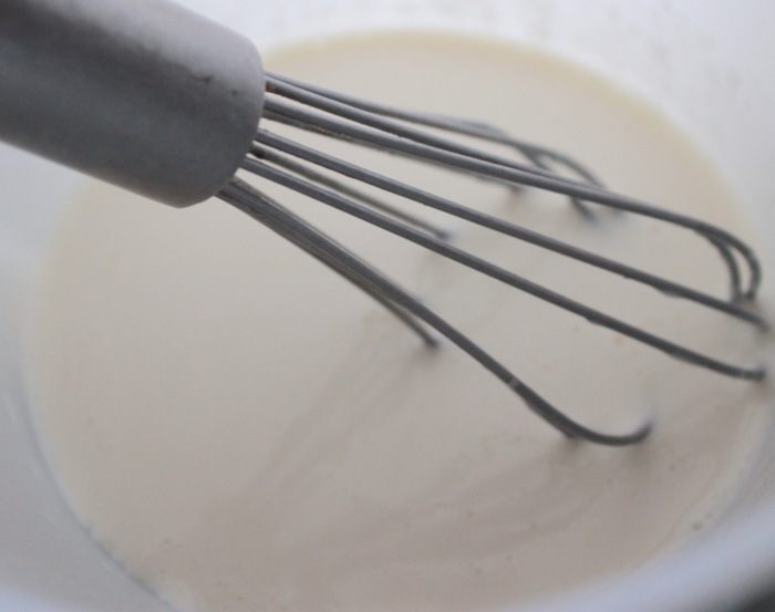 Венчиком смешать яйца со сливками, посолить, поперчить.