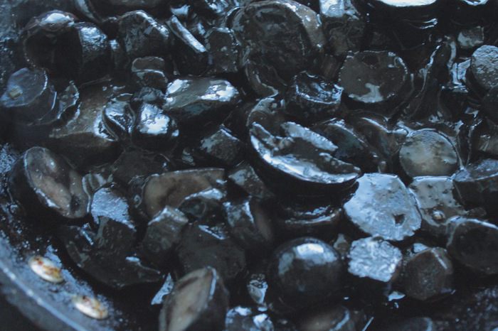 Обжарить грибы на растительном масле, посолив и поперчив в процессе жарки. Из грибов будет выделяться жидкость, когда она вся испарится, убрать сковородку с огня, а грибы разложить на противень (противень предварительно выложить пергаментом).