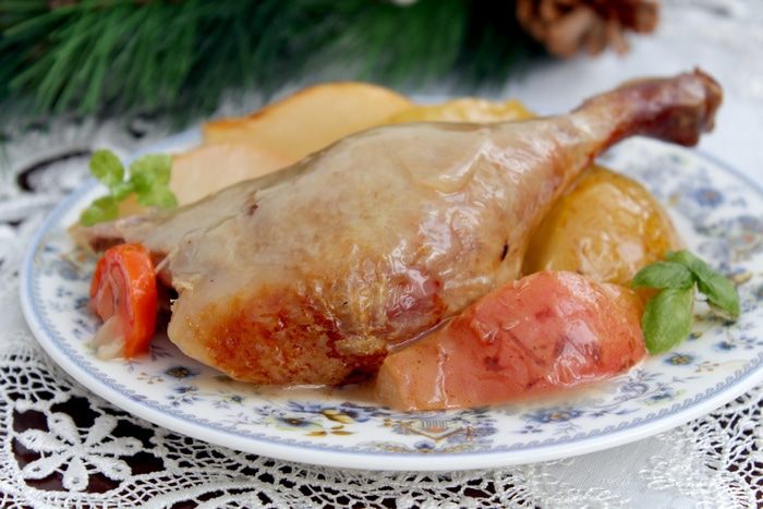 Итак, готовим утку и с яблоками и грушами, думаю, Барону Мюнхгаузену она пришлась бы по душе!