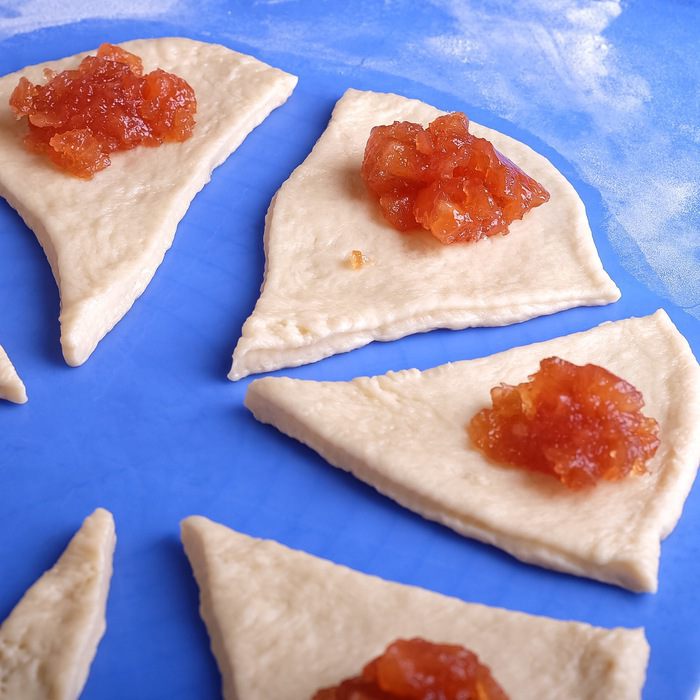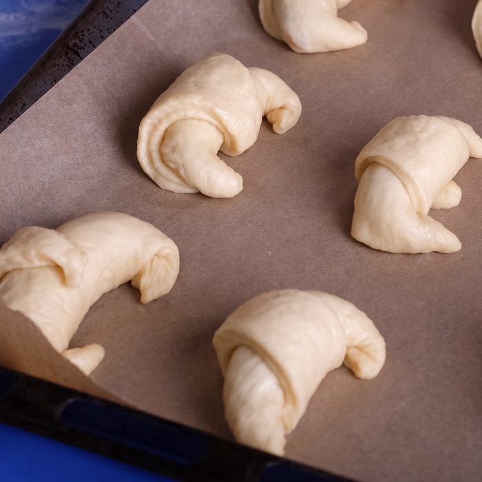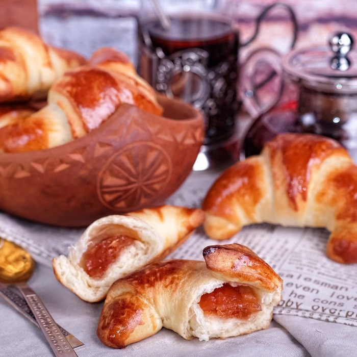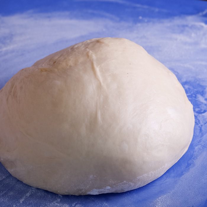 Готовим дрожжевое тесто. Молоко подогреваем до теплого состояния (37°С). Растворяем в нем дрожжи. Добавляем все остальные ингредиенты, кроме муки, перемешиваем. Постепенно добавляем муку и замешиваем мягкое тесто. Формируем его в шар и кладем в миску для увеличения в объеме минимум в 2 раза. Подходить тесто должно в теплом месте. Поверхность миски лучше накрыть полотенцем или затянуть пленкой. Через 1 — 2 часа тесто должно увеличиться в 1,5 — 2 раза.