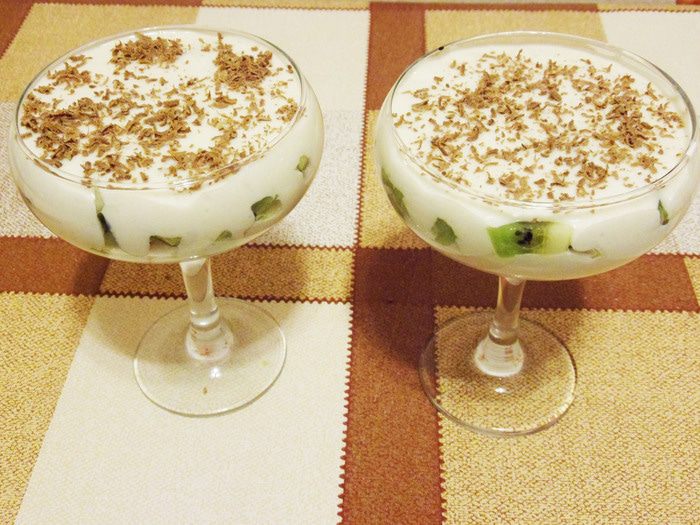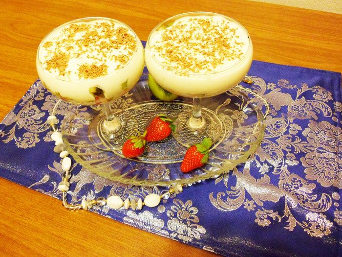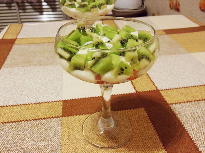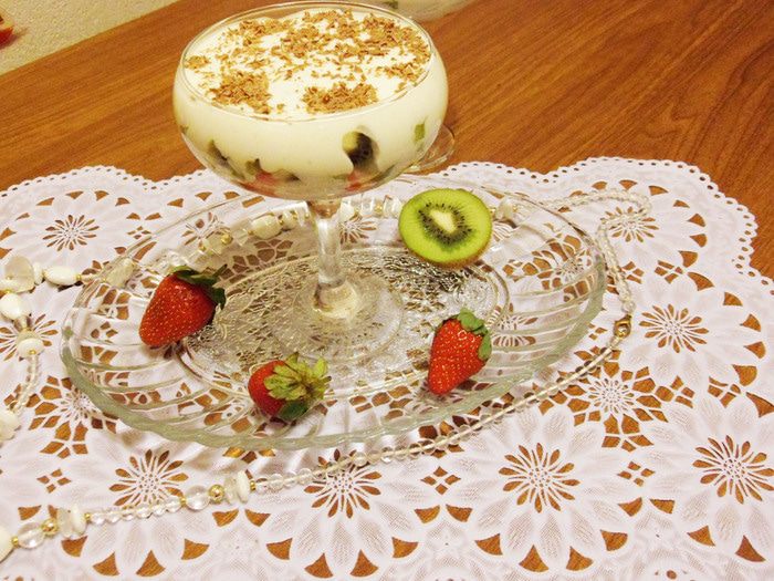 Простой и наивкуснейший десерт из сочных фруктов и приятного слегка густоватого крема на основе сливок от «Углече Поле». К сладкому воздушному крему я специально подобрала несладкие фрукты: клубнику и киви. Вот такой нежный, кисло-сладкий десерт.