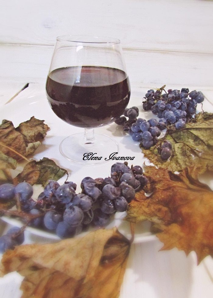 Осенью чистый, сухой виноград сорта «Изабелла» положить в двухлитровую банку. Добавить бадьян, кусочек корицы, гвоздику и натертую цедру одного лимона.