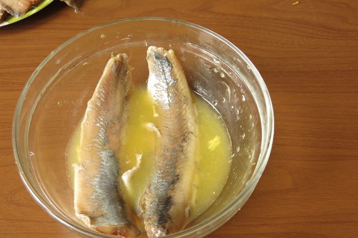Филируем рыбу. Более простой вариант — купить готовое филе, но у меня был выбор мороженое-перемороженое филе или сельдь.