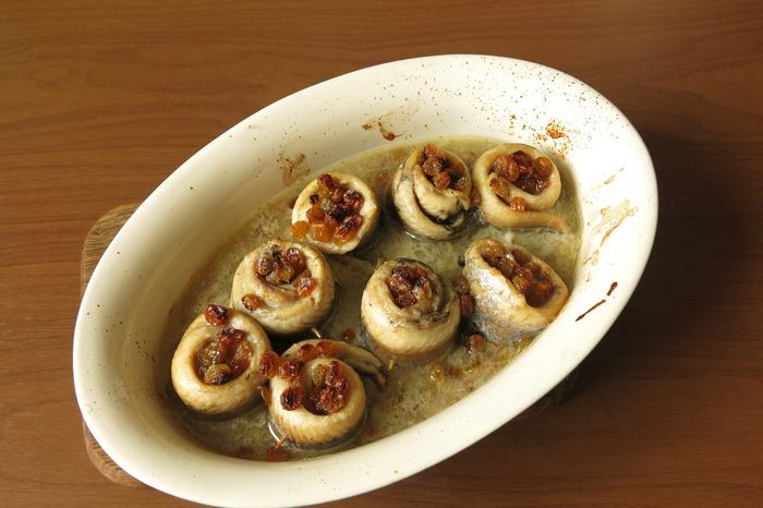 Попробуйте необычные рыбные рулетики с изюмом, запеченные в апельсиновом маринаде с маслом рисовым Biolio и белым вином. На гарнир — отваренный бурый рис. Вкус рыбы насыщенный, чуть восточный, сочность сохраняется за счет формы запекания и масла. Приятного аппетита!