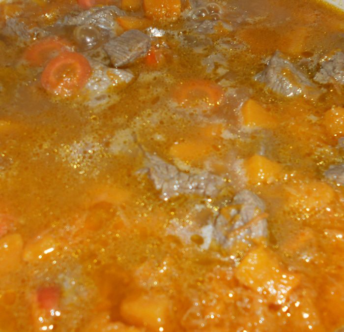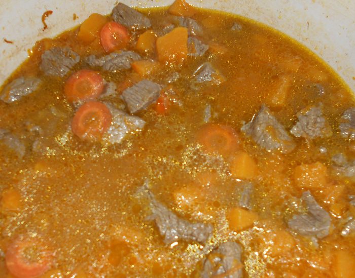 А вот такой насыщенный цвет гуляш приобретает в процессе тушения.