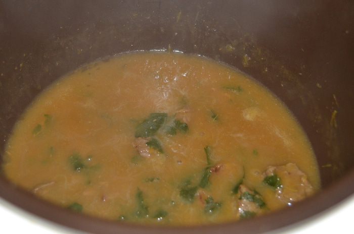 За 5 минут до окончания программы добавляем к гуляшу нарезанную свежую зелень. Можно немного загустить получившийся соус, добавив столовую ложку муки (предварительно размешать ее, чтобы не было комочков, в холодной воде).