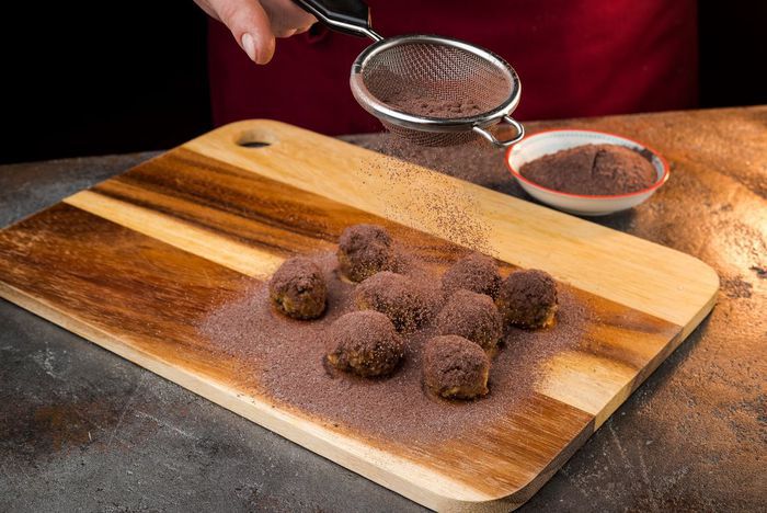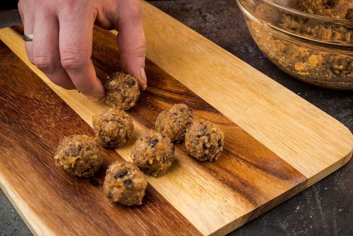 Из полученной массы скатать шарики. Поместить из в морозилку на 15 минут.