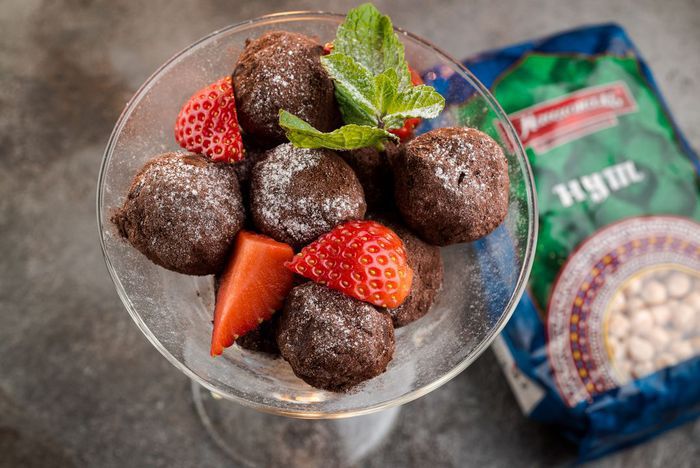 Шарики щедро посыпать смесью какао и сахарной пудры. Украсить по желанию мятой.