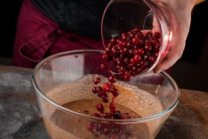 Готовим ароматный манник с клюквой!