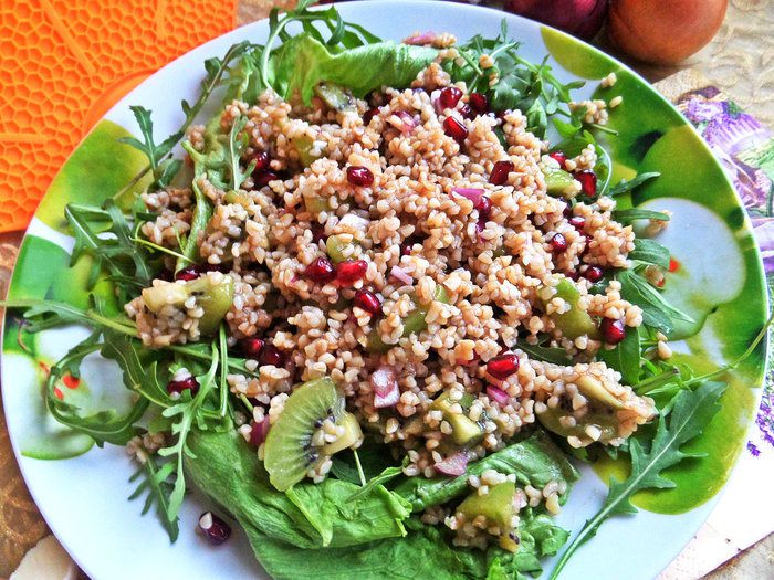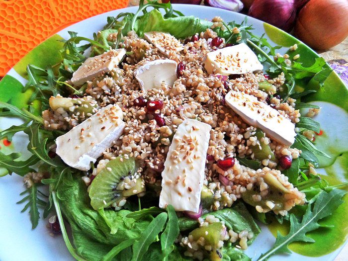 Помучаю вас немного рецептами с крупами, хотя все от них устали ))) Салат имеет место быть и на постном столе (без сыра), а так на каждый день очень даже вкусно и главное — быстро! Из масел рекомендую добавить масло вноградных косточек от Biolio.