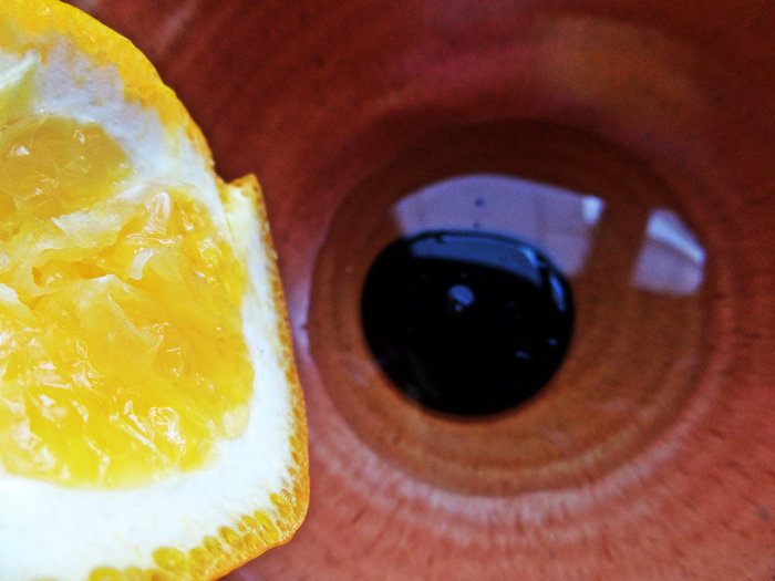 Для заправки смешать масло, бальзамический уксус и апельсиновый сок.