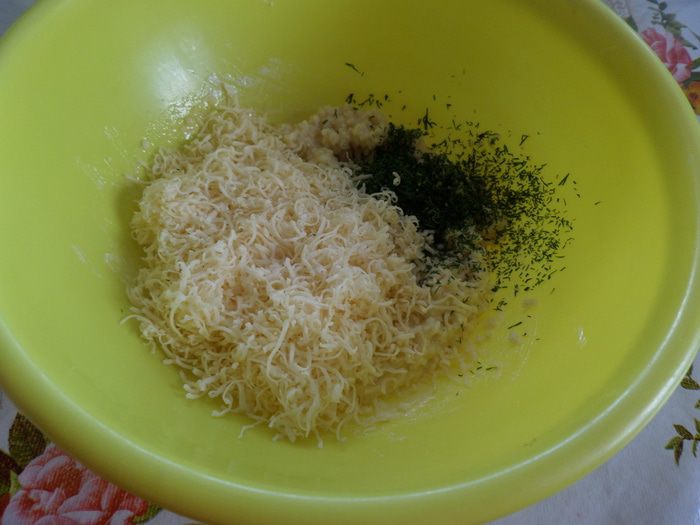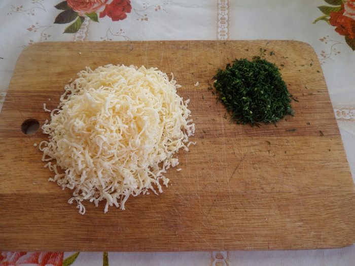 Нарезаем зелень (укроп) и натираем на терке сыр.