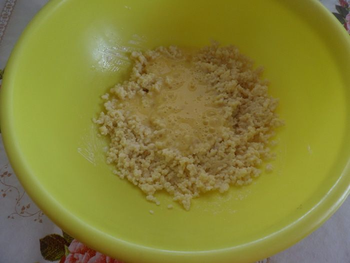Подготавливаем продукты. Отвариваем пшено до готовности в слегка подсоленной воде . Я использую ранее сваренное пшено в пакетиках. Вес отваренного пшена — 230 г.