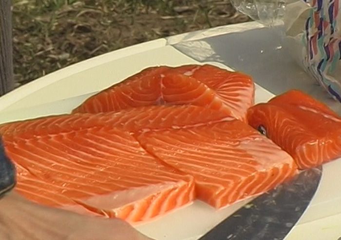Рыбу нарезать на куски длиной 10 см.