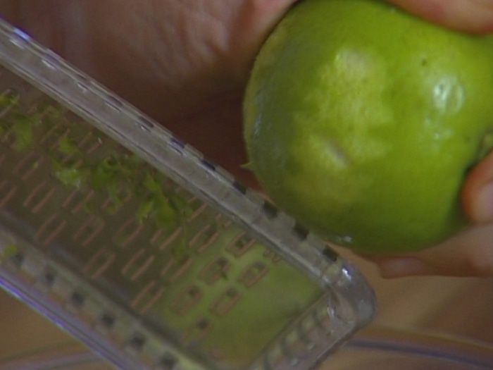 Цедру лайма тоже натереть на мелкой терке.