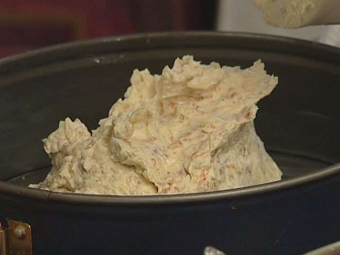 Смазать разъемную форму оставшимся сливочным маслом, выложить в нее тесто, равномерно распределив его, и выпекать в разогретой духовке 25–30 минут до готовности, затем остудить.