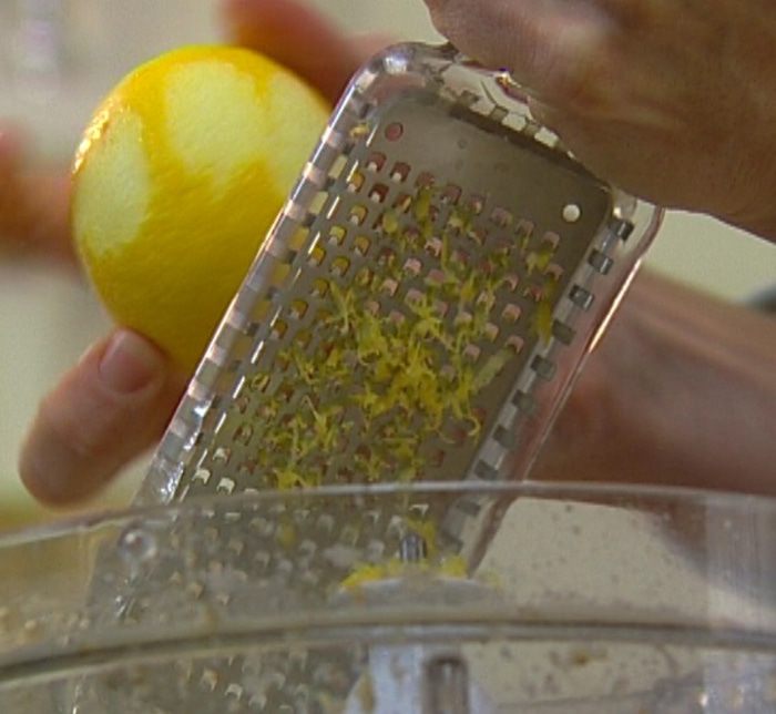 Цедру лимона натереть на мелкой терке, сок отжать.
