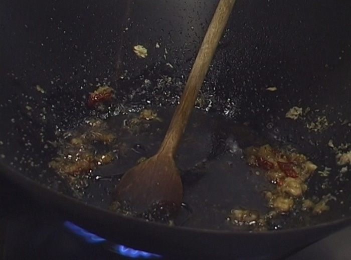 Добавить имбирь, соевый соус, рисовый уксус, рыбный или устричный соус, саке, перец чили и тушить все 1 минуту.