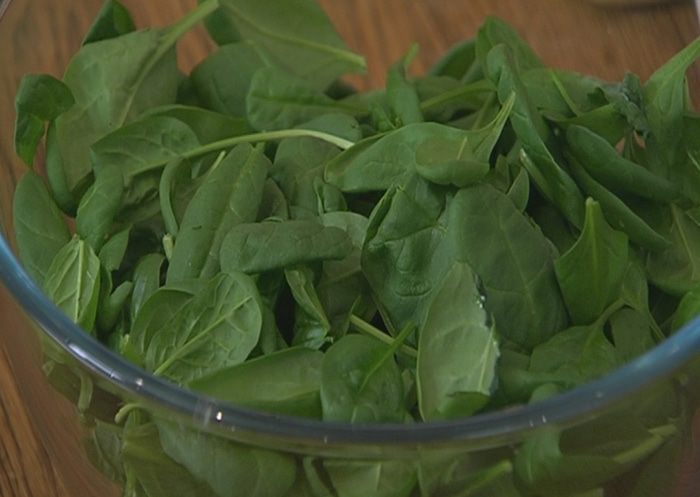 Шпинат промыть, высушить и измельчить.
