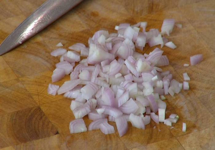 Лук почистить и мелко изрубить.