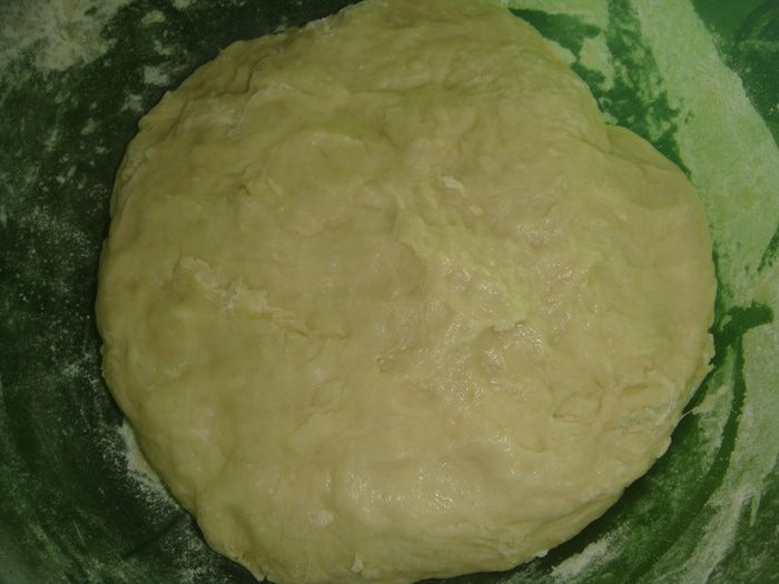 Всыпать просеянную муку и замесить мягкое тесто. Накрыть миску с тестом полотенцем и поставить в теплое место на 1,5 часа.