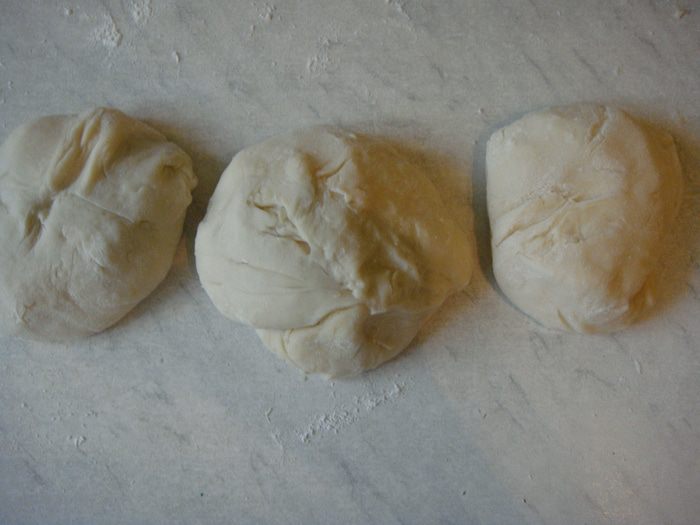 Тесто разделить на три части, одну часть сделать немного больше других.