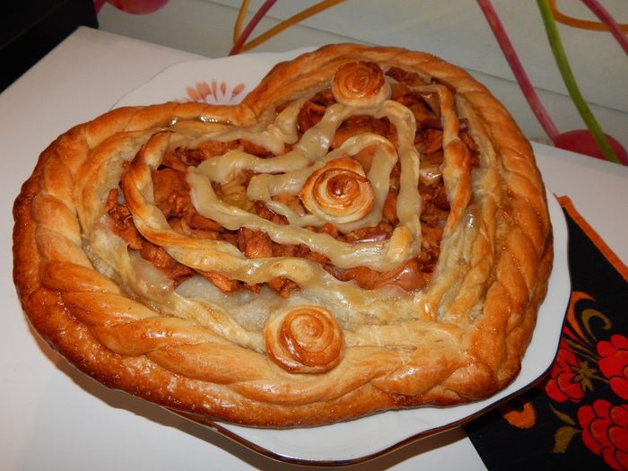 Пирог решила сделать в форме сердца, т.к. близится день всех влюбленных! :)
