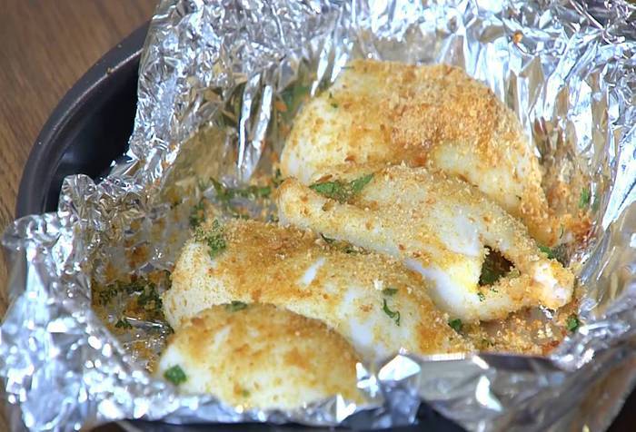 Запекать кальмаров в разогретой духовке 15‒20 минут.
