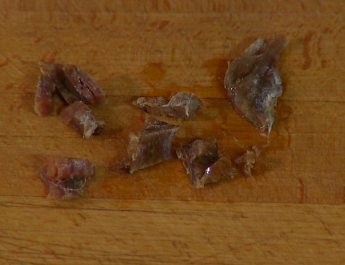 Начинка не должна быть похожа на пюре — лучше все нарезать, а не измельчать в блендере. Если анчоусы в соли, их нужно предварительно вымочить, а если не нашли анчоусов, добавьте какую-нибудь пикантную кильку.