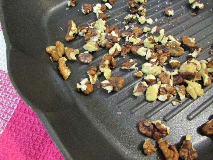 Грецкие орехи прокалить на сухой сковороде.