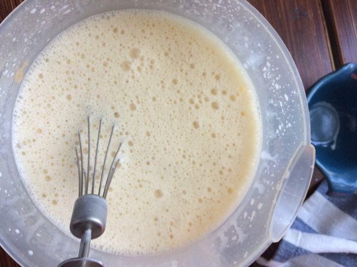 Добавьте яйца в тесто в 3 приема, каждый раз тщательно перемешивая венчиком.