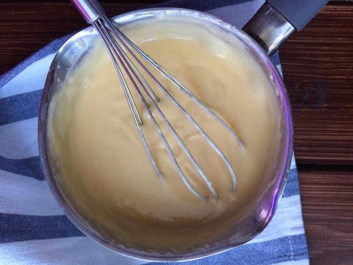 Налейте обратно в кастрюлю и готовьте 2 минуты до загустения, не переставая помешивать. Дайте остыть.