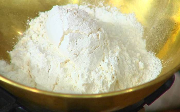 Муку перемешать с разрыхлителем и солью.