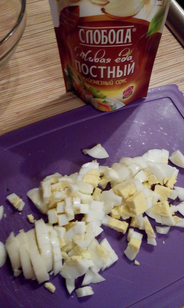 Нарезаем яйца.