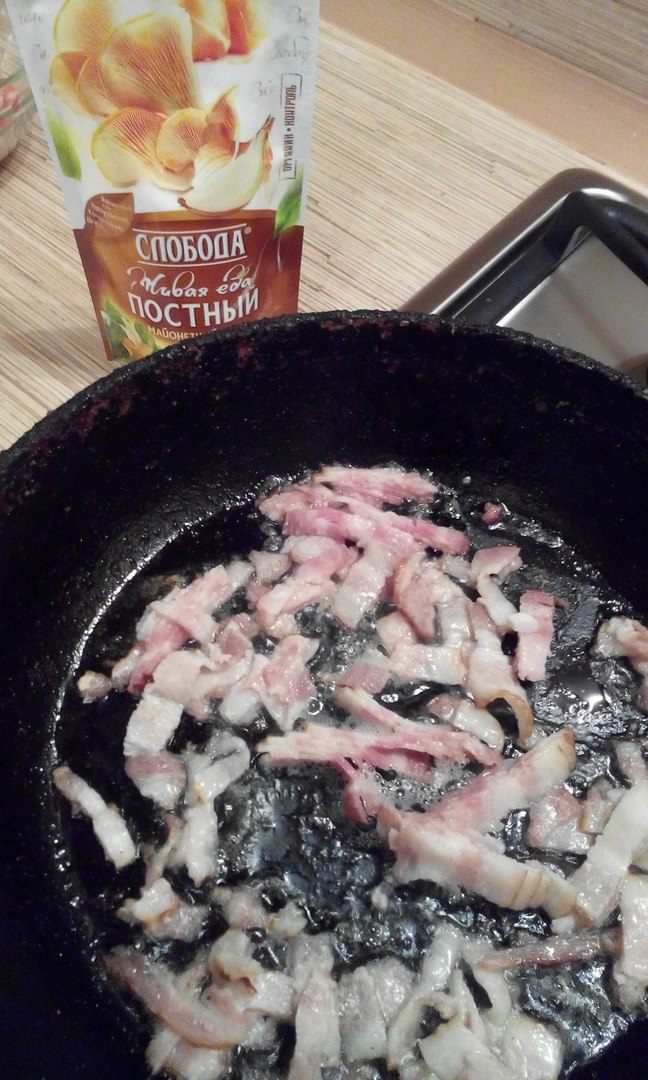 Обжарить бекон .