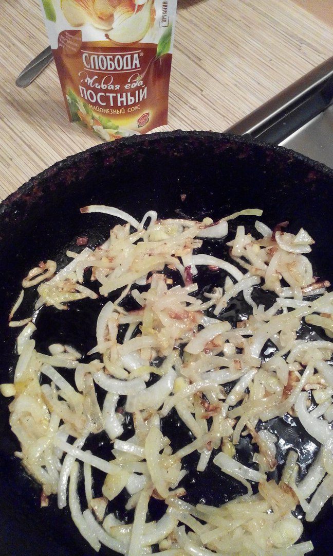 Обжарить лук до золотистого цвета.
