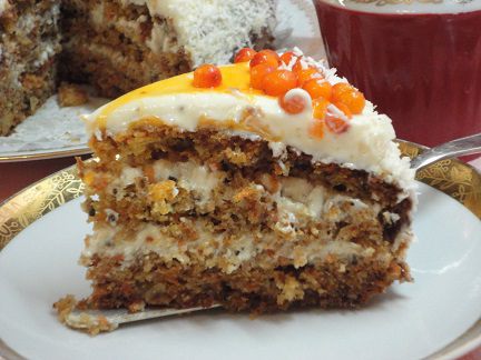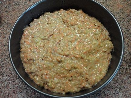 К яичной массе добавить орехи, ананасы, кокос и морковь. Все сухие ингредиенты перемешать (мука, соль, сода, разрыхлитель и корица) и просеять. В три приема подмешать к жидким ингредиентам и быстро замесить жидкое тесто, долго не вымешивая. Вылить в форму и выпекать около часа. Мне хватило 50 минут.