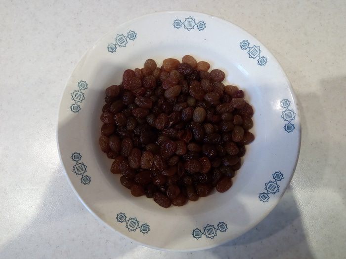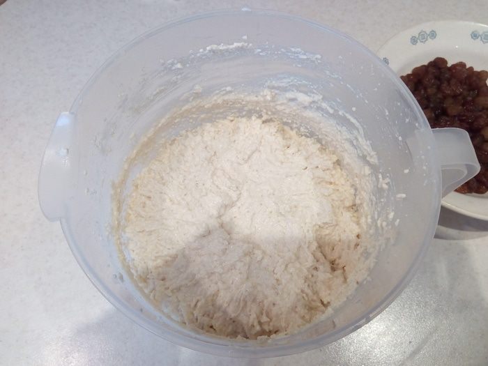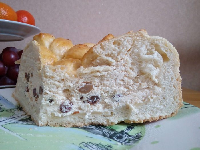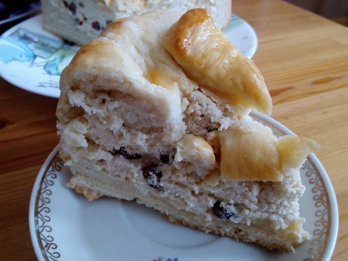 В творожную начинку добавляем изюм вместе с ромом, в котором он был замочен (отжимать изюм не нужно!).