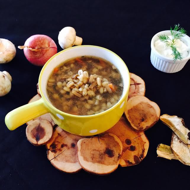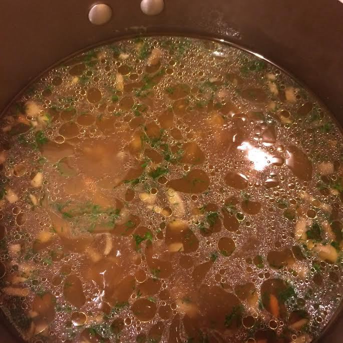 Вскипятить воду, в которой лежали сухие грибы, процедить ее через двойной слой марли. Добавить в кастрюлю и варить суп до готовности картофеля.