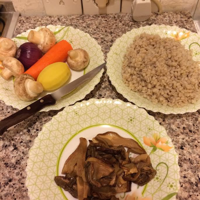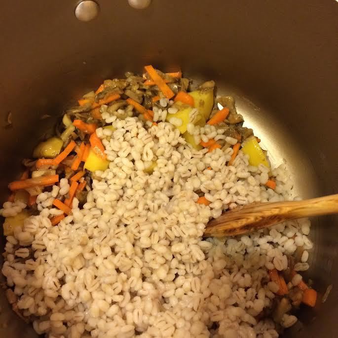 Добавить картофель, перловку, морковь и тушить еще 5 минут.