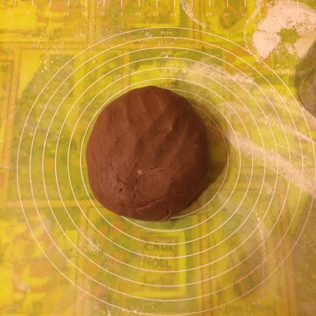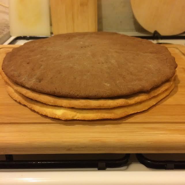 Испечь 2 темных коржа.