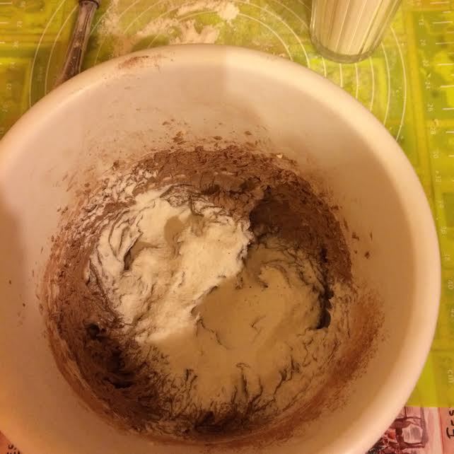 Темный корж: какао просеять, и хорошо перемешать тесто.