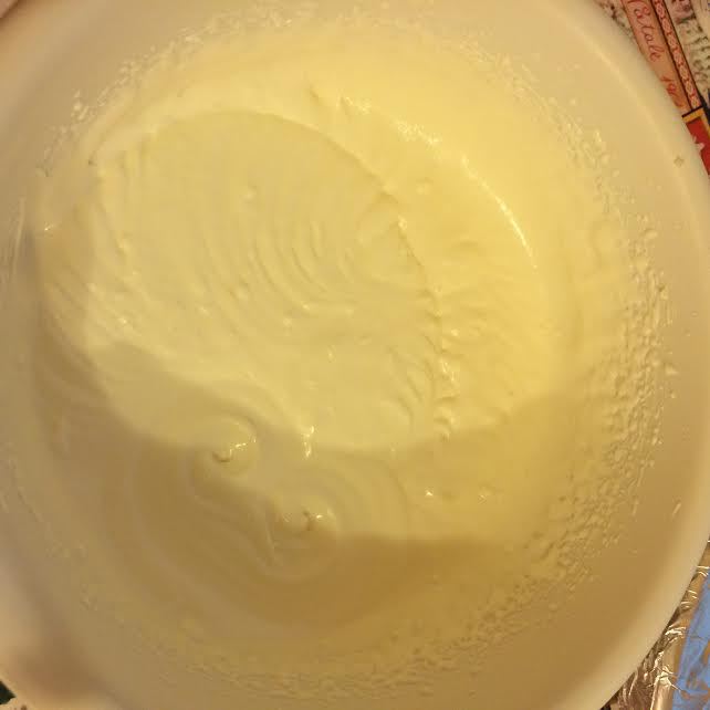 Начать постепенно добавлять сметану, взбивая хорошо после каждого раза.